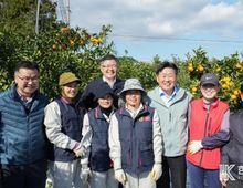 [ 한국미디어뉴스 이원영 기자 ] 오영훈 제주특별자치도지사가 20일 오후 서귀포시 남원읍 위미리 온주밀감 수확 농장을 찾아 일손 돕기에 나섰다. 제주도가 3년 연속 제주 감귤 조수입 1조 3,000억 원 달성을 목표로 품질 경쟁력 강화에 총력을 기울이는 가운데, 출하 초기 품질관리와 인력난 해소 정책을 현장에서 점검하기 위해 나섰다. 오 지사는 이날 서귀포농협 공공형 계절근로자와 함께 감귤 수확 작업에 참여하며 농가 애로사항을 청취했다. 수확 작업을 함께하며 현장 상황을 살핀 오 지사는 “수확 전 방제·수분 관리, 수확 후 철저한 선별 기준 준수가 제값을 받는 핵심”이라며 “5㎏ 기준 평균 가격이 1만 2,000원 내외로 형성돼 있고, 향후 가격 전망도 밝아 농가와 산지단체가 함께 노력하면 좋은 성과를 낼 수 있을 것”이라고 말했다. 올해 노지 온주밀감 생산은 전반적으로 양호한 것으로 전망된다. 2025년산 노지 온주밀감 예상 생산량은 39만 5,000톤으로 전년 대비 소폭 감소했으나, 생육·당도·외관이 좋은 편이라는 평가가 이어지고 있다. 전국 9대 도매시장 평균 누계