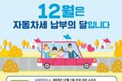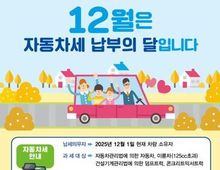 [ 한국미디어뉴스 김풍옥 기자 ] 청주시는 12월 정기분 자동차세로 22만5천788건에 대해 274억원을 부과했다고 14일 밝혔다. 전년 대비 6천319건, 1억8천만원이 증가한 수치다. 부과 대상은 자동차관리법에 따라 등록‧신고된 자동차‧이륜차, 건설기계관리법에 따라 등록된 덤프트럭‧콘크리트믹서트럭이다. 12월 1일 현재 자동차등록원부상 소유자에게 부과된다. 자동차세를 연납한 차량과, 자동차세 연세액이 10만원 이하여서 6월에 전액 부과된 차량은 12월 정기분 과세대상에서 제외된다. 납부 기한은 오는 12월 31일까지다. 위택스, 인터넷지로, 가상계좌, 전화 자동응답시스템, 은행 자동화기기(CD/ATM) 등 원하는 방법으로 납부하면 된다. 시 관계자는 “납기 내에 납부하지 않을 경우 납부지연가산세(3%) 또는 체납 시 번호판 영치 등의 불이익을 받을 수 있다”면서 “12월분 자동차세 고지를 받은 소유주께서는 납부기한 내에 꼭 납부해주길 바란다”고 말했다.