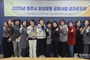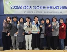 [ 한국미디어뉴스 김풍옥 기자 ] 청주시는 지난 12일 충북시청자미디어센터 대회의실에서 2025년 청주시 양성평등 공모사업 성과공유회를 개최했다. 이번 성과공유회는 2025년 청주시 양성평등 공모사업에 참여한 8개 단체가 함께 참여했으며, 단체별로 올 한해 추진한 양성평등 공모사업에 대한 성과를 발표하고 사업 추진 결과물을 공유했다. 또한 2026년 양성평등정책 신규사업을 제안하는 시간을 가졌으며, 발굴한 사업은 내년도 청주시 양성평등 공모사업 추진에 참고할 계획이다. 시는 공모를 통해 8개 사업을 선정해 4월부터 기록으로 보는 청주 여성의 삶 및 여성사, 양성평등 문화확산, 여성복지 및 권익 증진 등 다양한 분야의 사업을 추진해 왔다. 김옥선 여성가족과장은 “청주시 양성평등 정책 실현을 위해 사업을 추진해 주신 단체에 감사드린다”며 “모두가 행복한 양성평등 청주가 실현되도록 앞으르도 많은 관심과 참여를 바란다”고 말했다.
