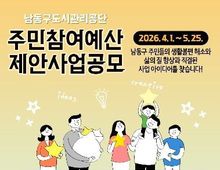 [ 한국미디어뉴스 김만길 기자 ] 인천시 남동구도시관리공단은 주민이 직접 지역 현안을 해결하고 실질적으로 체감할 수 있는 사업을 발굴하기 위해 ‘2026년도 주민참여예산제’를 본격 운영한다고 16일 밝혔다. 주민참여예산제는 주민이 지역에 필요한 사업이나 정책을 직접 제안하고, 예산 편성부터 집행·평가까지 전 과정에 참여할 수 있는 제도로, 주민과 행정 간 협력적 거버넌스를 구축하고 재정 운영의 효율성을 높이기 위해 추진된다. 이번 공모는 오는 4월 1일부터 5월 25일까지 진행되며, 남동구민을 비롯해 남동구 소재 사업자 및 직장인, 공단 시설 이용자라면 누구나 참여할 수 있다. 공모 대상은 주민 생활과 밀접한 지역 현안 사업으로, 주민 불편 해소와 삶의 질 향상에 기여할 수 있는 다양한 아이디어를 제안할 수 있다. 특히 생활 안전, 환경 개선, 공공시설 이용 편의 증진 등 주민 체감도가 높은 사업을 중심으로 발굴할 계획이다. 참여를 희망하는 주민은 공단 홈페이지에서 신청서를 내려받아 작성한 후 우편, 이메일, 팩스 또는 방문을 통해 제출하면 된다. 또한 주민 참여 기회를 확대하기 위해