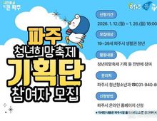 [ 한국미디어뉴스 이원희 기자 ] 파주시는 청년이 직접 기획하고 운영하는 ‘제5회 파주 청년희망축제’의 성공적인 개최를 위해 오는 26일까지 ‘파주 청년희망축제 기획단’을 모집한다. ‘청년희망축제 기획단’은 축제의 주제 설정부터 프로그램 구성, 홍보, 현장 운영까지 전 과정에 참여하는 조직으로, 청년의 시각과 참신한 생각을 축제에 반영하기 위해 운영된다. 모집 인원은 10명 내외로, 파주시에 주민등록을 두고 있거나 파주시 소재 학교·직장·단체 등에서 활동 중인 19~39세 이하 청년이라면 누구나 신청할 수 있다. 신청은 파주시청 누리집을 통해 가능하며, 지원 신청서와 개인정보 수집·이용 동의서 등 필수 서류를 제출해야 한다. 시는 서면 심사를 통해 신청자의 참여 의지와 활동 경험 등을 종합적으로 검토해 최종 참여자를 선발할 계획이다. 기획단으로 선정된 청년들은 3월부터 11월까지 활동하며, 정기 회의를 통해 축제 주제와 프로그램을 기획하는 등 다양한 역할을 수행하게 된다. 기획단 구성원에게는 파주시장 명의의 위촉장이 수여되며, 회의 참석 시 소정의 활동 수당이 지급된다. 또한 전체 활동의 일정 비율 이상 참여