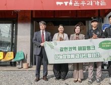 [ 한국미디어뉴스 이보영 기자 ] 과천시 갈현동은 지역 음식점 ‘돈우리가든’과 ‘나주면옥’이 ‘해피뱅크 참여 가게’ 사업에 동참하며, 각각 매월 5만 원을 정기 후원하기로 했다고 지난 31일 밝혔다. ‘해피뱅크 참여 가게’는 갈현권역(갈현동·별양동) 내 취약계층을 지원하는 지역사회보장협의체 특화사업이다. 후원금은 취약계층의 생계비‧의료비‧생필품 지원에 사용될 예정이다. 이날 진행된 현판식에는 신계용 과천시장과 이유리 ‘돈우리가든·나주면옥’ 대표 등이 참석했으며, 행사는 ‘돈우리가든’에서 열렸다. 이유리 대표는 “지역사회를 위한 의미 있는 사업에 동참하게 되어 기쁘다”라며, “앞으로도 지속적으로 후원을 이어가며 나눔 문화를 확산해 나가겠다”라고 말했다. 신계용 과천시장은 “정기적인 후원을 통해 나눔에 앞장서 주신 이유리 대표님께 감사드린다”라며, “이러한 따뜻한 마음이 과천시 전역으로 확대될 수 있도록 적극 노력하겠다”라고 밝혔다.