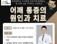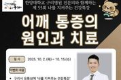 [ 한국미디어뉴스 김서안 기자 ] 구리시는 오는 10월 2일, 시민들의 근골격계 질환 예방과 건강관리 역량 강화를 위해 '어깨 통증의 원인과 치료'를 주제로 한양대학교 구리병원 마취통증의학과 박형준 교수와 함께하는 ‘나를 지켜주는 건강특강’을 구리시 공식 유튜브 채널(구리비전)을 통해 송출한다고 밝혔다. 현대인들은 장시간의 컴퓨터 사용, 스마트폰 과다 이용, 운동 부족 등으로 인해 어깨 통증을 호소하는 경우가 증가하고 있다. 어깨 질환은 흔히 단순 근육통으로 오인해 치료 시기를 놓치기 쉬우나, 방치하면 만성 통증이나 일상생활 불편으로 이어질 수 있어 조기 발견과 올바른 관리가 무엇보다 중요하다. 이번 특강에서는 △어깨 통증의 주요 원인 △잘못된 생활 습관과 예방법 △비수술적·수술적 치료 방법 △일상에서 실천할 수 있는 스트레칭 및 운동법 등을 알기 쉽게 전달할 예정이다. 시민들은 10월 2일부터 15일까지 구리비전 채널에서 강의를 시청한 뒤, 궁금한 사항을 댓글로 남길 수 있다. 이 가운데 우수 질문 3개를 선정해 박형준 교수가 직접 답변하고, 추가로 17명을 무작위로 추첨해 총 20명에게 모바일 쿠폰을 증정