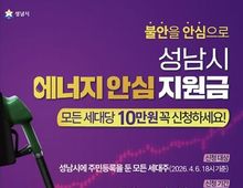 [ 한국미디어뉴스 이원영 기자 ] 성남시는 중동 사태에 따른 국가 자원안보 위기 경보 발령으로 경제적 부담이 커진 시민들을 지원하기 위해 전국 최초로 ‘성남시 에너지 안심지원금’을 오는 5월 6일부터 신청을 받는다고 밝혔다. 이번 사업은 ‘에너지법’, ‘국가자원안보특별법’, ‘성남시 에너지 기본조례’에 근거해 추진되며, 통합재정안정화기금 등을 활용해 총 420억7500만원의 사업비가 투입된다. 지원 대상은 2026년 4월 6일 18시 기준 성남시에 주민등록을 둔 세대주 410,218명이며, 세대당 10만원이 지급된다. 지급 방식은 현금(계좌이체), 선불카드, 성남사랑상품권(모바일) 중 선택할 수 있도록 해 시민 선택권을 보장했다. 현금(계좌이체)과 선불카드는 동 행정복지센터에서 신분증을 지참해 현장 접수해야 한다. 신청은 5월 6일부터 6월 12일까지이며, 초기 혼잡을 줄이기 위해 5월 22일까지는 출생연도 끝자리에 따른 요일제(5부제)를 운영한다. 현금 지급을 위해서는 통장사본을 제출해야 하며, 최대 5일(근무일 기준)이 소요될 예정이다. 선불카드는 현장 접수 시 즉시 발급된다. 모바일 접수는