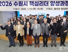 [ 한국미디어뉴스 이보영 기자 ] 수원특례시는 15일 아주대학교 율곡관에서 ‘2026년 제12기 수원특례시 핵심리더 양성 과정 입교식’을 열었다. 입교식에는 이재준 수원특례시장, 최기주 아주대학교 총장, 권혁성 아주대학교 공공정책대학원장, 6급 공무원 교육생 35명 등이 참석했다. 수원특례시 핵심리더 양성 과정은 시정을 선도할 중간관리자급 핵심 인재 양성을 목표로 하는 장기 교육과정으로 12월 1일까지 11개월간 운영된다. 행정 환경 변화에 대응하는 핵심 역량을 중심으로 리더십, 직무 전문성, 정책연구 등 직급 맞춤형 교육을 한다. 실무와 미래 행정을 아우르는 역량을 강화하고, 교육 성과가 현장 행정으로 이어져 시민에게 더 가까이 다가가는 공직자로 성장하도록 지원한다. 최기주 아주대학교 총장은 “특례시에 걸맞은 공직자 교육 프로그램을 운영하겠다”며 “수원시와 긴밀하게 협력해 미래를 이끌 핵심리더를 양성하는 데 적극적으로 힘을 보태겠다”고 밝혔다. 이재준 수원시장은 35명 교육생 한 명 한 명을 호명하며 “이번 교육과정은 수원의 미래를 책임질 핵심 리더로 성장하는 출발점”이러며 “보고서