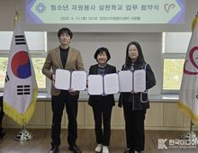 [ 한국미디어뉴스 이보영 기자 ] 학교생활기록부에 자원봉사 활동 특기 사항이 삭제되는 등 기재 항목이 축소되며 청소년 봉사 활동이 위축되고 있는 가운데, 안양시가 ‘마을 중심의 자기주도형 봉사’라는 새로운 해법을 내놨다. 안양시자원봉사센터는 14일 오후 4시 안양시자원봉사센터 사랑뜰에서 안양서중학교 및 안양부흥중학교와 ‘청소년 자원봉사 실천학교’ 업무협약을 체결하고, 본격적인 현장 밀착형 프로그램 운영에 들어간다고 15일 밝혔다. 협약식에는 정옥란 자원봉사센터장을 비롯해 류병곤 안양서중학교장, 이은미 안양부흥중학교장 등 각 기관 관계자들이 참석했다. 협약의 주요 내용은 ▲청소년 진로 탐색 및 창의적 체험 활동 지원 ▲자원봉사 활성화를 위한 인적·물적 자원 연계 ▲지역 사회 봉사 참여 확대를 위한 상호 협력 체계 구축 등이다. 이번 협약은 봉사 활동을 단순한 시간 이수 수단이 아닌, 학교 교육 과정과 연계한 ‘창의적 체험 활동’으로 전환하기 위해 마련됐다. 특히 올해는 기존 박달중·부안중에 이어 안양서중과 안양부흥중이 신규 참여하며, 안양형‘지속 가능한 봉사 모델’이 확대 적용됐다. 주