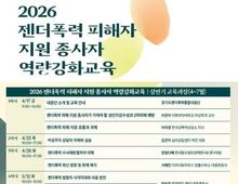 [ 한국미디어뉴스 김일규 기자 ] 경기도와 경기도젠더폭력통합대응단이 17일 도내 젠더폭력 피해 지원 현장 종사자들의 전문성 향상을 위한 ‘2026 역량강화 교육’ 상반기 과정을 시작하며 현장 대응력 강화에 나섰다. 올해 교육은 기존 피해 지원 현장은 물론, 시군 바로희망팀, 대학 인권센터와 청소년 지원기관 등 초기 대응이 이뤄지는 유관 기관 종사자까지 참여 폭을 확대했다. 현장 대응 주체의 범위를 확장해 지역사회 내 통합적인 지원 협력 기반을 다지겠다는 취지다. 460명 모집에 517명의 종사자가 신청해 지역사회 전반에서 전문 교육에 대한 수요가 높은 것으로 나타났다. 역량강화 교육은 17일부터 7월 3일까지 총 10차에 걸쳐 진행된다. 주요 내용은 ▲성인지 감수성과 2차 피해 예방 ▲수사·재판 절차 및 최신 판례 해석 ▲디지털 성폭력·스토킹 등 유형별 맞춤형 지원 전략 ▲피해자 트라우마 위기 개입 등으로 각 분야 최고 전문가들이 강연자로 나선다. 마지막 10차시 교육(7월 3일)에는 영화 ‘세계의 주인’ 상영과 윤가은 영화감독 등이 참여하는 GV(관객과의 대화) 세션을 마련, 예술적 관점에서 피