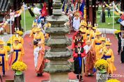 [ 한국미디어뉴스 이보영 기자 ] 화성특례시는 10월 18일, 용주사(주지 성효 스님) 일원에서 민족의 평화와 안녕을 기원하는 불교 전통의례 ‘불기 2569년 수륙대재’를 봉행했다고 밝혔다. 수륙대재는 물과 육지에서 떠도는 외로운 무주고혼들을 위로하고 구제하기 위해 부처님의 가르침을 설하고 음식을 공양하는 불교의식이다. 용주사는 고려시대부터 이어져온 이 전통문화를 현대에 되살리고 시민들의 문화 향유 기회를 확대하고자 2017년부터 수륙대재를 정기적으로 봉행해오고 있다. 특히 올해 용주사 수륙대재는 역사성을 한층 더 부각시켰다는 평을 받았다. 영가들을 맞는 시련의식을 시작으로 옛 수륙재가 그러했듯 왕의 교지와 하사품을 전달하는 역할을 화성특례시장(정명근 시장)이 진행하여 전통문화 고증에 신경을 쏟은 모습이였다. 그 후로는 영가를 대접하고 깨끗하게 목욕시키는 대령, 관욕 의식, 수륙재 공간을 정돈하고 설행 공간을 정하는 사자단과 오로단, 상단과 중단, 하단의식, 등 불교 전통 의례의 정수를 보여주었다. 정명근 화성시장은 축사에서“정조대왕의 효심과 애민 정신이 녹아있는 용주사에서 진행되는 수륙대재의 의