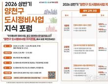 [ 한국미디어뉴스 이보영 기자 ] 양천구는 재건축·재개발 등 주요 도시정비사업이 본격화되는 시점에 맞춰 조합 임·직원과 주민을 대상으로 ‘2026년 상반기 도시정비사업 지식포럼’을 개최한다고 밝혔다. 현재 양천구에서 추진 중인 도시정비사업 물량은 총 8만 9319세대로, 2031년까지 약 5만 7천 호 착공을 목표로 하고 있다. 특히 목동아파트는 지난해 12월 1~3단지를 끝으로 14개 단지 모두 정비구역 지정이 완료됐으며, 현재는 조합설립과 사업시행인가 단계로 빠르게 진입하고 있다. 이에 구는 이번 포럼을 통해 조합 임·직원과 주민의 이해도와 전문성을 높이고, 사업 추진 과정에서 발생할 수 있는 오해와 분쟁을 사전에 예방해 사업을 보다 신속하고 안정적으로 추진한다는 계획이다. 포럼은 3월 12일부터 3월 26일까지 매주 목요일 오후 7시부터 9시까지 총 3회에 걸쳐 해누리타운 해누리홀에서 진행된다. 회차별 250명을 모집하며, 참여를 원하는 구민은 3월 10일까지 온라인 구글폼 또는 도시발전추진단(02-2620-4482~4)으로 신청하면 된다. 각 회차 강의는 정비사업 추진 과정에서 꼭 알아야