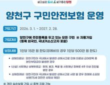 [ 한국미디어뉴스 이보영 기자 ] 양천구는 일상 속 예기치 못한 사고로부터 구민의 든든한 울타리가 되어주고 있는 ‘구민안전보험’과 ‘구민 자전거보험’ 지원 사업을 올해도 이어간다고 3일 밝혔다. 보험료는 전액 구가 부담하며, 약 44만 모든 구민은 별도 절차 없이 1년간 자동 가입된다. 두 보험은 전국 어디에서 발생한 사고든 보장하며, 개인이 가입한 실손보험과 중복 보상이 가능하다. 보험금은 사고일로부터 3년 이내에 청구할 수 있다. 구민안전보험…일상 상해부터 사회재난까지 보장 2025년부터 시행되고 있는 ‘구민안전보험’은 떨어짐, 넘어짐, 접질림, 깔림, 부딪힘 등 일상생활 중 발생하는 각종 상해사고에 대해 1인당 최대 15만 원의 의료비를 지원한다. 상해로 사망한 경우에는 장례비 최대 500만 원도 지급된다. 특히 올해는 사회재난 상해진단 위로금 항목을 신설해 보장 범위를 확대했다. 화재, 붕괴, 폭발, 다중운집 인파사고 등 사회재난 피해로 4주 이상 진단을 받은 경우 1인당 최대 15만 원의 위로금을 지원한다. 보장기간은 2026년 3월 1일부터 2027년 2월 28일까지이며,