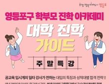 [ 한국미디어뉴스 이보영 기자 ] 영등포구가 변화하는 입시 제도에 맞춤형 정보를 제공하는 ‘학부모 진학아카데미’를 확대 운영한다고 밝혔다. 이번 아카데미는 학부모의 요구를 반영해 ▲평일 저녁반(신설) ▲중학교부터 준비하는 맞춤형 입시 ▲2026~2028 대입 트렌드 특강 ▲실전 심화 컨설팅(신설)의 4개 과정으로 구성했다. 직장인 학부모를 위해 ‘평일 저녁반’ 기본과정(퇴근 후 2시간: 대학입시 완전정복)을 신설하고 지난 13일부터 매주 화요일 저녁 7시에 운영한다. 대학입시 구조와 전략적 접근법을 중심으로 핵심 정보를 제공하며 오는 11월 4일까지 운영한다. ‘중학교부터 준비’하는 맞춤형 입시 로드맵은 11월 8일과 12월 20일에 진행하며 고교 선택 전략, 학습 습관 형성, 개별 상황에 맞춘 컨설팅 등 맞춤형 전략을 제시한다. 강의는 EBS 현장교사단 ‘수능 총괄’ 출신 윤윤구 강사가 맡는다. 2026~2028 대입트렌드 특강 ‘대학진학 가이드 아카데미’는 11월 1일과 12월 6일에 열리며, 향후 3년간 입시의 주요 변화와 성적대별 합격 전략을 안내한다. ‘공교육 입시 1타강사’인 배영준 서
