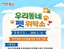 [ 한국미디어뉴스 이원영 기자 ] 서울 용산구가 경제적 어려움이나 입원 등으로 장기간 집을 비워야 하는 상황에서 반려동물을 돌보지 못하는 취약계층의 부담을 덜기 위해 ‘2026 우리동네 펫 위탁소’ 사업을 추진한다. 취약계층은 반려동물 돌봄 공백이 유기나 방치로 이어질 가능성이 높다는 점에서, 안전한 보호 체계를 구축하고 반려동물과 보호자가 함께 안정적인 생활을 이어갈 수 있도록 지원한다는 방침이다. 이번 사업은 올해 12월까지 운영하며, 지역 내 주민등록을 둔 취약계층을 대상으로 한다. 지원 대상은 ▲기초생활수급자 ▲차상위계층 ▲한부모가족 ▲범죄피해자 ▲1인가구 등이며, 동물등록이 완료된 반려동물에 대해 위탁보호 비용을 지원한다. 지원 기간은 최대 10일이며, 1인가구는 소득 기준과 관계없이 반기별 5일까지 이용할 수 있다. 지원 금액은 반려동물의 무게와 종에 따라 차등 적용한다. 반려견의 경우 ▲4kg 미만, 1일 3만 원 ▲4kg 이상 20kg 미만, 4만 원 ▲20kg 이상, 5만 원이며, 반려묘는 무게와 관계없이 1일 5만 원을 지원한다. 지원 기준을 초과하는 기간에 대해서는 보호자가 비용을 부담한다