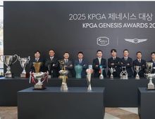 [ 한국미디어뉴스 이원영 기자 ] 12일 서울 서대문구 소재 스위스 그랜드 호텔 서울에서 2025 시즌 KPGA 투어의 대미를 장식하는 자리인 ‘2025 KPGA 제네시스 대상 시상식’ 행사를 앞두고 포토콜이 진행됐다. 이날 포토콜에는 ‘제네시스 대상’ 옥태훈(27.금강주택)이 부상으로 제공되는 제네시스 GV70 앞에서 다양한 포즈를 취하며 ‘2025 KPGA 제네시스 대상 시상식’의 시작을 알렸다. 이어 ‘제네시스 대상’ 옥태훈를 비롯해 개막전 ‘제20회 DB손해보험 프로미 오픈’ 우승자이자 제네시스 포인트 2위 김백준(24.team속초아이), ‘2025 우리금융 챔피언십’ 챔피언이자 제네시스 포인트 3위 이태훈(35.캐나다), 제네시스 포인트 4위 최진호(41.코웰), ‘KPGA 클래식’ 우승자 배용준(25.CJ), ‘제44회 GS칼텍스 매경오픈’과 ‘KPGA 파운더스컵’에서 2승을 기록한 문도엽(34.DB손해보험), ‘더채리티클래식 2025’ 챔피언 최승빈(24.CJ), 그리고 제네시스 포인트 8위에 위치한 송민혁(21.CJ)까지 8명의 제네시스 포인트 TOP10 선수들이 제네시스 포인트 TOP10 보드 앞에서 다양