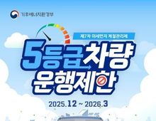[ 한국미디어뉴스 이원영 기자 ] ■ 미세먼지 계절관리제 기간 배출가스 5등급 차량 운행제한 맑고 푸른 하늘을 만들어 나가기 위해 5등급 차량 운행을 제한하고 단속하는 미세먼지 저감 제도입니다. · 2025년에는? 올해는 더 나아가 전기차·친환경차를 함께 사용하며 모두가 만드는 깨끗한 공기에 동참해 주세요! ■ 제7차 미세먼지 계절관리제 운행제한제도 한눈에 알아보기 · 시행기간 2025년 12월부터 2026년 3월까지 · 시행시간 평일 오전 6시부터 오후 9시까지 *울산은 오후 6시까지 · 시행대상 저공해 미조치 5등급 차량 · 시행지역 - 수도권(서울·경기·인천) - 비수도권 6개 지역(세종·대전·광주·대구·울산·부산) ■ '운행제한제도' 언제, 어디서 시행하나요? 12월부터 3월, 오전 6시부터 오후 9시까지 수도권과 6개 특·광역시에서 시행됩니다. *울산은 오후 6시까지 *평일 기준 공휴일과 토요일 제외 ■ 내 차는 단속대상일까요? 저공해 미조치 5등급 차량은 단속 대상입니다. 자동차배출가스 종합전산시스템 '등급조회'에서 확인