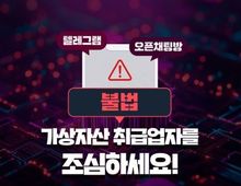 [ 한국미디어뉴스 이원영 기자 ] 텔레그램, 오픈채팅방, 유튜브, SNS 등에서 활동하는 불법 가상자산취급업자가 우후죽순으로 증가하고 있습니다. 불법 가상자산취급업자는 각종 범죄 행위에 연루되었을 가능성이 매우 높습니다. - 텔레그램, 오픈채팅방을 통해 익명으로 스테이블 코인 교환 - 국내에 신고하지 않은 가상자산 취급업자를 블로그, SNS 등으로 홍보·알선 - 환전소를 통해 가상자산을 매개로 환치기 금전 피해 발생 등에 대해 구제 받기 어려울 수 있습니다. 적법하게 신고된 아래 가상자산사업자 27개소 외에 내국인 대상으로 영업을 하는 가상자산 취급업자는 모두 불법입니다. 두나무 - 업비트 코빗 - 코빗 코인원 - 코인원 빗썸 - 빗썸 한국디지털거래소 - 플라이빗 스트리미 - 고팍스 차일들리 - BTX 포블게이트 - 포블 코어닥스 - 코어닥스 그레이브릿지 - 비블록 포리스닥스코리아 - 오케이비트 골든퓨쳐스 - 빗크몬 프라뱅 - 프라뱅 뱅코 - 보라비트 한국디지털에셋 - KODA 한국디지털자산수탁 - KDAC 월렛원 - 오하이월렛 하이퍼리즘 - 하이퍼리즘 가디언홀딩스 - 오아시스 마인