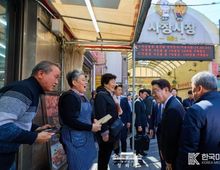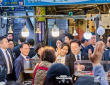 [ 한국미디어뉴스 이원영 기자 ] 이재명 대통령과 김혜경 여사는 오늘 오전 제66주년 3·15의거 기념식에 참석한 뒤 경상남도 창원시 성산구에 위치한 반송시장을 깜짝 방문해 물가를 점검하고 민심을 청취했다. 반송시장은 1988년 개장해 지역민들의 삶과 함께해온 곳으로, 저렴하고 정감 있는 칼국수 골목으로도 유명하다. 이재명 대통령은 더불어민주당 대표 시절이던 2024년 3월에도 반송시장을 방문한 바 있다. 시장에 깜짝 등장한 이재명 대통령 부부를 상인들과 주민들은 환호와 박수로 반겼다. 시장 곳곳에서는 “진짜 대한민국”, “사랑합니다“, ”존경합니다“, ”응원합니다“, “건강하세요”, “순방 때 너무 잘하셨습니다” 등 다양한 응원의 목소리가 이어졌다. 이재명 대통령 부부는 일일이 악수와 하이파이브를 하며 인사를 건넸고, 아이들에게는 허리를 숙여 눈을 맞추며 반가움을 전하기도 했다. 한 시민이 “조금 전 TV로 3·15의거 기념식을 봤는데 어떻게 벌써 여기 오셨느냐”고 묻자, 이재명 대통령은 “날아왔다”고 농담을 건네며 현장에 웃음을 자아내기도 했다. 이재명 대통령 부부는