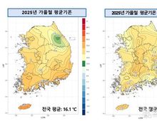 [ 한국미디어뉴스 이원영 기자 ] 기상청은 2025년 가을철(9∼11월) 기후 특성과 원인에 대한 분석 결과를 발표했다. 올가을은 10월까지 이어진 고온과 잦은 비, 11월 적은 강수량 등 계절 내 큰 변동성이 주요 특징이었다. 가을철 전국 평균기온은 평년보다 2.0 ℃ 높은 16.1 ℃로 지난해에 이어 역대 2위를 기록했다. 10월 하순부터 11월 중순 사이 일시적으로 기온이 떨어졌으나, 전반적으로 평년보다 높은 기온이 지속됐다. 북태평양고기압이 평년보다 서쪽으로 확장하여 우리나라에 영향을 주면서, 고기압 가장자리를 따라 따뜻하고 습한 공기가 유입되어 기온이 평년보다 높았다. 특히, 10월까지도 고온이 이어지면서 서귀포는 13일에 관측 이래(1961년∼) 가장 늦은 열대야를 기록했고, 연간 열대야일수는 79일로 가장 많았다(2위: 2024년 68일). 한편, 10월 28~29일에는 찬 대륙고기압이 일시적으로 발달하여 찬 공기가 유입되면서 아침 기온이 중부내륙과 경북북부를 중심으로 영하로 떨어지며 서울, 대구 등에서 작년보다 9∼10일 일찍 첫서리와 첫얼음이 관측됐다. 11월 전국 평균기온은 8.5 ℃로 평년