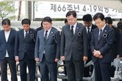 [ 한국미디어뉴스 이종철 기자 ] “김주열 열사를 비롯한 수많은 선열의 희생이 오늘의 민주주의를 만들었음을 잊지 말아야 합니다.” 김관영 전북특별자치도지사는 19일 남원시 김주열 열사 추모공원에서 열린 제66주년 4·19혁명 기념식에 참석해 민주영령을 추모하고, 4·19 정신 계승 의지를 다졌다. 이날 행사는 정동영 통일부 장관과 박희승 국회의원, 최경식 남원시장, 이영노 남원 김주열 열사 기념사업회장, 도민 등 300여 명이 참석한 가운데 민주주의 발전의 의지를 다졌다. 기념식은 국민의례에 이어 김주열 열사 약력 소개, 기념사, 추도사, 남원시립국악단의 기념 공연, 4·19의 노래 제창, 묘역 참배 순으로 진행됐다. 특히 4·19혁명희생유족과 보훈단체 회원, 학생 등 다양한 세대가 한자리에 모여 민주주의의 소중함을 되새겼다. 김 지사는 추도사에서 “4·19혁명은 단순한 정권 교체를 넘어선 위대한 승리의 역사”라며 “평범한 시민의 힘으로 절대 권력을 무너뜨린 시민혁명의 전형이자 대한민국 민주주의의 초석을 다진 역사적 전환점”이라고 강조했다. 이어 “1960년 2월 28일 대구에서 피어오른 민주의
