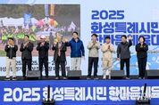 [ 한국미디어뉴스 이보영 기자 ] 106만 화성특례시민의 화합을 다지는 ‘2025년 화성특례시민 한마음 체육대회’가 26일 시민들의 열띤 응원과 참여 속에 성황리에 마무리됐다. 이번 대회는 화성시체육회 및 화성시장애인체육회, 각 종목단체의 공동 주최·주관으로 지난 25일부터 26일까지 이틀간 화성종합경기타운 보조경기장 및 종목별 구장에서 개최됐다. 이번 대회에는 육상, 휠체어육상, 축구, 테니스, 배구, 탁구, 씨름, 궁도, 배드민턴, 볼링, 바둑, 족구, 게이트볼, 한궁, 슐런 총 16개 종목 28종별 경기에 29개 읍면동 4천여 명의 선수들이 참여해 선의의 경쟁을 펼쳤다. 26일 오전에는 29개 읍면동별 특색을 뽐내는 입장식에 이어 개회식이 열렸다. 개회식은 정명근 화성특례시장의 대회사 및 주요 내빈의 축사, 박종선 화성시체육회장의 개회 선언, 선수단 대표 선서, 입장상 시상, 축하 공연 등으로 진행됐다. 입장상은 궁중 악대인 대취타를 면민들과 함께 재현한 정남면(조성하 정남면장, 이용기 체육진흥회장, 최학운 이장단협의회장)이 차지했다. 2위는 진안동에게, 공동 3위는 팔탄면·서신면·기배동이