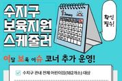 [ 한국미디어뉴스 이원영 기자 ] 용인특례시 수지구는 보육 정책 등을 알기 쉽게 정리한 ‘보육지원 스케줄러’에 이달 보육 이슈 항목을 신설했다고 15일 밝혔다. 구는 사업별 신청·정산 시기가 달라 신청 오류, 누락 등의 민원이 빈번함에 따라, 이를 해결하기 위해 2025년부터 보육지원 스케줄러를 운영하고 있다. 보육지원 스케줄러는 어린이집과 보육 교사 등을 대상으로 각종 지원 사업의 일정 등을 사전에 공유해 대상자들이 빠짐없이 신청할 수 있도록 돕고자 마련됐다. 구는 매달 신청·정산 지원사업, 제출일, 제출 방법, 주요 변경사항 등을 표로 만들어 보육인 오픈 채팅방과 보육통합정보시스템에 선보이고 있다. 여기에 이달 보육 이슈 항목을 추가해 지역 내 어린이집 182곳을 대상으로 매월 각종 지원사업을 사전에 알리고 변경되는 정책과 최근 이슈, 주요 정보 등을 상세히 제공하기로 했다. 구 관계자는 “보육 교사들의 업무 부담을 덜고, 효율적인 보육 현장을 지원하기 위해 이달 보육 이슈 코너를 마련했으니 유용하게 이용해 주시기를 바란다”고 했다.