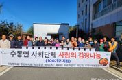 [ 한국미디어뉴스 김서안 기자 ] 남양주시는 10일 수동면에서 7개 사회단체가 함께 취약계층을 위한 ‘사랑의 김장 나눔’ 행사를 진행했다고 밝혔다. 이번 행사는 경기도농수산진흥원이 주관한 ‘경기농식품 나눔문화 확산사업’ 공모에 수동면 주민자치회가 선정돼, 농산물 소비 촉진 및 취약계층 대상 지역공동체의 나눔 문화 확산을 위해 마련됐다. 행사에는 수동면 이장협의회, 주민자치회, 새마을남녀지도자, 체육회, 바르게살기위원회, 적십자회, 지역사회보장협의체 등 7개 단체, 80여 명이 힘을 모아 김치를 정성껏 담갔다. 이날 마련된 김치 100통은 수동면 관내 독거노인, 장애인, 복지사각지대에 놓인 저소득층 가정 등에 전달됐다. 특히 각 사회단체별로 회원들이 김장 김치를 직접 전달하며 이웃의 안부를 살폈다. 이진춘 수동면장은 “경기도의 지원과 지역 7개 단체의 협력이 더해져 이웃에게 따뜻한 마음을 전할 수 있었다”며 “앞으로도 정성과 마음을 담은 나눔이 계속될 수 있도록 적극 지원하겠다”고 말했다. 수동면은 앞으로도 이웃과 함께하는 따뜻한 나눔과 돌봄이 일상 속에 스며들 수 있도록 지속적인 노력