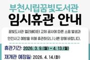 [ 한국미디어뉴스 김만길 기자 ] 부천시립꿈빛도서관은 노후 엘리베이터 전면 교체 공사를 위해 3월 9일부터 4월 13일까지 임시휴관한다. 공사 과정에서 분진과 소음 발생이 불가피한 만큼 이용자 안전을 확보하고 시민 불편을 최소화하기 위해 전면 휴관 후 공사를 진행한다. 시는 휴관에 따른 이용자 불편을 최소화하기 위해 대체 서비스를 운영해 도서 이용 공백을 줄일 계획이다. 이에 따라 상호대차 및 예약도서대출 서비스는 3월 16일부터 4월 13일까지 평일 오전 9시부터 오후 6시까지 운영하며, 무인예약대출 서비스와 무인 반납함은 휴관 기간에도 정상 운영한다. 도서관 이용을 원하는 시민은 상동도서관, 책마루도서관, 상동역·신중동역 칙칙폭폭 작은도서관, 숲속작은도서관을 이용하면 된다. 부천시 꿈빛도서관 관계자는 “이번 엘리베이터 교체 공사는 시민 안전을 최우선으로 고려한 시설 개선 사업”이라며 “공사 기간 다소 불편이 있더라도 양해를 부탁드리며, 보다 안전하고 쾌적한 환경에서 도서관을 이용할 수 있도록 정비에 최선을 다하겠다”고 말했다. 부천시립꿈빛도서관은 공사를 차질 없이 마무리해 4월 14일부터 재개