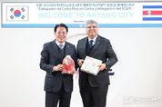 [ 한국미디어뉴스 이보영 기자 ] 안양시는 최대호 시장이 지난 17일 오전 11시40분 안양시청 3층 접견실에서 호르헤 엔리케 발레리오 에르난데스 주한코스타리카 대사와 코스타리카 커피 산업을 총괄하는 공식 연구·관리 기관인 코스타리카 커피연구소(ICAFE) 대표단을 접견하고, 양국 지방정부 간 실질적 교류 확대 방안을 논의했다고 18일 밝혔다. 이번 접견은 지난 7월 말 최대호 안양시장이 전국사회연대경제지방정부협의회 소속 지자체장들과 함께 코스타리카를 방문해 스테판 브루너 제1부통령, 호르헤 발레리오 주한코스타리카 대사 등 정부 관계자와 만나 지속가능한 지역발전과 상생 경제 실현을 위한 정책을 논의한 데 따른 후속 교류 일정이다. 이날 최대호 시장은 환영 인사에서 “한국과 코스타리카의 수교 63주년이자 코스타리카 독립 204주년을 맞는 뜻깊은 해에 이렇게 다시 만나게 되어 더욱 의미가 깊다”며 “지리적으로 멀리 떨어져 있지만 상호 존중과 신뢰를 바탕으로 동반자적 협력을 이어가자”고 강조했다. 이에 주한코스타리카 대사는 안양시의 따뜻한 환대에 감사를 표하며 “코스타리카와 한국 양국 관계가 더욱 공고해지는 만큼,