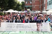 [ 한국미디어뉴스 이보영 기자 ] 박강수 마포구청장은 9월 15일 오전 11시, 성산아파트 내 농구장에서 열린 정준호 배우와 함께하는 ‘행복짜장Day’ 행사에 참석했다. 마포복지재단 주관으로 열린 이번 행사는 배우 정준호 씨를 비롯해 (주)도원명가 도원반점, 신비한형제들, 포인트유, 보헤미안컴퍼니, (사)희망을 나누는 사람들 등 다양한 단체가 총 환가액 2천만 원 상당의 현물을 후원하며 마련됐다. 이번 행사에 배우 정준호 씨는 후원자로 참여하는 동시에 주민들에게 직접 짜장면을 나누며 나눔의 의미를 더했다. 후원자들의 정성으로 마련된 600인분의 짜장면과 기념품은 주민들에게 전달되었고, 행사장은 함께 어울려 웃고 이야기하는 따뜻한 분위기로 가득 찼다. 개그맨 이형식 씨는 사회를 맡아 특유의 유쾌한 입담으로 공연과 관객을 하나로 만들며 행사장은 환한 웃음과 뜨거운 박수로 가득했다. 박강수 마포구청장은 “짜장면은 가족, 친구들과 함께했던 추억의 맛이 더해진 음식인 만큼, 오늘의 행복짜장Day도 주민 여러분께 또 하나의 흐뭇한 기억이 되길 바란다”라며, “앞으로도 마포구는 이웃 간 행복을 나