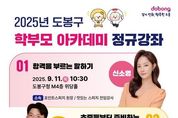 [ 한국미디어뉴스 이보영 기자 ] 서울 도봉구가 2학기 개학을 맞아 자녀 교육에 고민 많은 학부모를 위해 9월 한 달간 3번의 학부모 아카데미를 연다. 학부모 아카데미는 스피치, 영어, 인공지능(AI) 등 자녀의 학습 및 미래역량과 관련된 다양한 주제의 강좌로 구성됐다. 먼저 오는 9월 11일 도봉구청 위당홀(M4층)에서 ‘합격을 부르는 말하기’ 강좌가 열린다. 이날 신소영 포인트스피치 원장은 대입 면접 등에 유용한 스피치 기술을 상세히 알려줄 예정이다. 16일 도봉구청 자운봉홀(16층)에서는 ‘초중등부터 준비하는 수능영어로드맵’ 강좌가 개최된다. 강좌는 정승익 EBSi 영어 강사가 맡아 수능 영어 학습 로드맵과 전략을 강의한다. 끝으로 24일 도봉구청 자운봉홀(16층)에서는 ‘AI시대의 AI리터러시와 자녀교육 방향성’ 강좌가 진행된다. 안자영 동국대학교 경영대학원 겸임교수가 강의를 맡는다. 도봉구 지역 내 학부모라면 누구나 신청 가능하며, 신청은 강좌 당일 전까지 도봉구 누리집으로 하면 된다. 정원이 차면 접수를 마감한다. 11일 ‘합격을 부르는 말하기’ 강좌 정원은 4