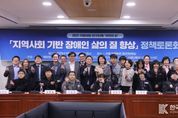 [ 한국미디어뉴스 이원영 기자 ] 국회의원연구단체 약자의눈(대표의원 강득구)과 너섬나들이 사회적협동조합(이사장 조유진)은 11월 21일 국회 의원회관 제9간담회실에서 '지역사회 기반 장애인 삶의 질 향상 정책 토론회'를 공동으로 개최했다. 이날 토론회에는 강득구 대표의원을 비롯하여 강경숙(연구책임의원)·채현일(회원)·서미화(회원)·박민규·차규근 국회의원이 참석했다. 토론회는 성인 발달장애인이 지금 사는 지역에서 살고 늙기(Living & Aging in Place) 위한 돌봄·노동·주거·의사결정·소득보장 체계를 지역 중심으로 어떻게 재구성할 것인지 논의하기 위해 마련된 자리였다. 발달장애인의 하루가 아침부터 밤까지 이어지기 위해 필요한 촘촘한 지역사회 연속지원체계를 구축하자는 문제의식이 행사 전반을 관통했다. 행사는 ‘위드 하모니카팀’의 하모니카 공연으로 문을 열었다. 개회사에 나선 조유진 이사장은 “장애인 정책은 장애인만을 위한 것이 아니라 우리 사회의 인간성을 회복하는 일”이라고 강조했다. 그는 지역 기반 서비스가 장애인의 기본권을 보장하는 핵심이라고 밝히며, 이번 논의가 발달장애인의 인권과 복지를 한 단