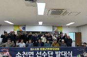 [ 한국미디어뉴스 이보영 기자 ] 소천면은 제44회 봉화 군민체육대회를 앞두고 지난 22일 소천면사무소 회의실에서 선수단 발대식을 열었다. 이날 행사에는 선수단과 체육회 이사회 등 30여 명이 참석해 체육대회의 성공적인 참여를 다짐했다. 발대식 참가 선수들에게 새 운동복이 전달됐으며, 종목별 연습과 응원 연습도 함께 진행되어 화기애애한 분위기 속에서 하나 된 시간을 보냈다. 이경자 소천면장은 “우리 면민들이 한마음으로 뭉쳐 서로를 응원하고, 체육대회를 통해 소천면의 단합과 저력을 보여줄 좋은 기회가 될 것이며 모든 선수들이 부상 없이 즐겁게 대회를 치르길 바란다.”라고 격려의 말을 전했다. 소천면 선수단은 이번 군민체육대회에서 그동안 갈고닦은 실력을 마음껏 발휘해 좋은 성적을 거두는 것은 물론, 면민 간의 화합과 우정을 다지는 데 최선을 다할 계획이다.