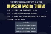 [ 한국미디어뉴스 김서안 기자 ] 동두천시시설관리공단은 오는 11월 1일 동두천자연휴양림에서 가을밤 하늘을 배경으로 별자리와 행성을 함께 관측하는 '천문행사 ‘별빛으로 밝히는 가을밤’'을 개최한다. 이번 행사는 시민이 자연 속에서 직접 천체를 관측하며 과학문화의 즐거움을 체험하고, 가족 단위 방문객에게는 휴식과 소통의 시간을 제공하기 위해 마련됐다. 행사는 오후 2시부터 8시까지 자연휴양림 어울림동 세미나실 및 잔디마당 일원에서 진행된다. 낮에는 태양 전용 망원경을 활용한 태양 관측 체험, 저녁에는 전문 강연과 함께 달·행성·별자리 관측 프로그램이 운영된다. 또한 시민 참여형 이벤트인 ‘별자리 퀴즈’도 열려 참가자들이 과학을 보다 쉽고 흥미롭게 접할 수 있도록 구성됐다. 이종진 동두천시시설관리공단 이사장은‘별빛으로 밝히는 가을밤’은 가족과 함께 별을 보며 자연의 아름다움과 과학의 신비로움을 동시에 느낄 수 있는 뜻깊은 행사”라며“앞으로도 시민이 함께 참여할 수 있는 ESG형 과학문화 프로그램을 지속적으로 추진하겠다”라고 밝혔다.