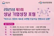 [ 한국미디어뉴스 이보영 기자 ] 성남산업진흥원은 오는 10월 22일 11시 30분부터 ‘인공지능 전환 실행 전략’을 주제로 2025년 제3회 ‘성남기업성장포럼’을 개최한다. 이번 포럼은 성남시 중소기업의 성공적인 ‘인공지능 전환(AI Transformation)’을 실질적으로 지원하기 위해 마련됐다. ‘성남기업성장포럼’은 매회 성남시 중소기업이 직면한 경영환경 변화 이슈를 주제로 선정하여 개최되고 있다. 올해는 제1회 ‘기후테그 비즈니스 새로운 성공전략’, 제2회 ‘세계교질서 변화와 맞춤형 경영전략’ 등 두 차례 개최됐고, 14개 유관기관과 300여명의 기업인이 참여했다. 포럼 참가는 성남시 소재 기업인이면 누구나 가능하고, 성남산업진흥원 홈페이지를 통해 참가 신청을 할 수 있으며 행사 당일 현장 등록도 가능하다. 포럼에서는 한국산업기술진흥원 곽용원 첨단산업공급망단 단장이 정부의 ‘인공지능 전환’ 지원정책과 지원사업을 소개하고, 최재식 ㈜인이지 대표이사(카이스트 교수, 국가인공지능전략위원)가 ‘인공지능 전환’을 통한 비즈니스 혁신 사례와 구체적인 실행 전략을 제시할 예정이다. 본행사에 앞서 열리