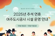 [ 한국미디어뉴스 이보영 기자 ] 여주도시공사는 2025년 추석 명절을 맞아 고향을 찾는 귀성객과 시민들의 편의를 위해 주요 시설 운영시간 조정, 무료개방 등 특별 서비스를 제공한다고 2일 밝혔다. 공사는 우선, 추모객이 집중되는 여주추모공원의 추석기간(5일~7일) 운영 시간을 기존 오전 9시~오후 6시에서 오전 7시~오후 6시로 2시간 조기개장하여 확대운영한다. 이를 통해 명절연휴 기간 원활한 참배가 가능하도록 편의를 도울 예정이다. 또한, 시민과 방문객들의 주차 편의를 위해 공영주차장을 연휴기간(3일~9일) 전면 무료 개방한다. 이를 통해 귀성객과 지역 상권을 찾는 이용객들이 보다 편리하게 주차할 수 있을 것으로 기대된다. 교통약자 이동지원센터의 경우, 특별교통수단은 추석기간(5일~7일) 무료 운행하며, 바우처 택시는 정상 요금으로 운영된다. 공사는 교통약자의 이동권 보장을 위해 차량 안전 점검을 마치고 원활한 운행 서비스를 제공할 계획이다. 종합운동장 등 체육시설과 오학, 점동 파크골프장은 추석기간(5일~7일)에만 휴무이고 그 외 휴일은 정상운영하며, 이 중 파크골프장은 대체공휴일(8일)과