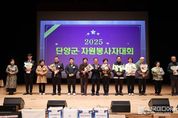 [ 한국미디어뉴스 김풍옥 기자 ] 충북 단양군자원봉사종합센터는 지난 26일 단양문화예술회관에서 ‘2025년 단양군 자원봉사자 대회’를 열어 자원봉사자들을 격려·축하하는 자리를 마련했다. 이날 행사에는 김문근 군수와 이상훈 군의장을 비롯한 관내 기관·단체장, 자원봉사자와 가족 등 400여 명이 참석해 한 해 동안의 봉사 성과를 함께 나눴다. ‘당신의 하루, 세상의 희망’을 주제로 열린 이번 대회에서는 1만 시간 이상 봉사를 이어온 박길화 씨가 ‘봉사왕중왕’ 인증패를 받는 영예를 안았다. 또 고운골 봉사단 유여울 씨 등 11명이 우수 자원봉사자로 선정돼 군수 표창을 수상했다. 이와 함께 금장 18명, 은장 41명, 동장 61명 등 총 120명에게 자원봉사 마일리지 인증패가 수여됐으며, 군의장·국회의원 표창 각 2명과 자원봉사 아이디어 그림 공모전 수상자 23명(유치부 10명, 청소년부 13명)에 대한 시상도 이어졌다. 특히 올해는 30여 년간 자원봉사센터에서 근무하며 헌신해 온 정아향 사무국장이 정년을 맞아 공로패를 받으며 참석자들의 큰 박수를 받았다. 시상식 후에는 한 해 동안 자원봉사