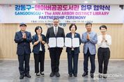 [ 한국미디어뉴스 이보영 기자 ] 강동구는 29일, 미국 미시간주 앤아버 공공도서관(Ann Arbor District Library)과 업무협약을 체결하고, 미국 공공도서관과의 문화 교류를 공식화했다고 밝혔다. 이번 협약은 국내 지방자치단체가 미국 공공도서관과 직접 맺은 최초의 사례로, 앞으로 양 기관은 도서·자료 교환 및 인적 교류, 온·오프라인 국제 교류 프로그램 운영 등 폭넓은 협력을 추진한다. 이와 함께, 앤아버 공공도서관의 일라이 나이버거(Eli Neiburger) 관장은 강동구 대표 도서관인 강동중앙도서관의 개관을 축하하기 위해 오는 8월 30일 개관식에 직접 참석하는 한편, 앤아버 공공도서관에서 출간한 신간 도서 150권을 기증해 협약의 의미를 더했다. 구는 기증 받은 도서를 강동중앙도서관 1층 ‘앤아버 공공도서관 기증 서가’에 전시해 구민 누구나 열람할 수 있도록 했으며, 내년에는 미국 앤아버 공공도서관에 한국 도서와 간행물, 영상자료, 관내 관광지도 등을 기증하면서 앤아버 시민들이 한국과 강동구에 대해 쉽게 접할 수 있는 ‘강동구 코너’를 조성할 계획이다. 또한, 앤아버 공공도서관