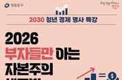 [ 한국미디어뉴스 이원영 기자 ] 영등포구가 고금리와 불확실한 경제 환경 속에서 청년들의 경제적 자립 역량 강화를 위해 ‘2030 청년 경제 명사 특강’을 개최하고, 오는 2월 1일까지 청년 100명을 모집한다고 밝혔다. 특강은 2월 3일 오후 7시 30분부터 서울청년센터 영등포에서 열리며, 19~39세 청년을 대상으로 진행된다. 강연은 세종대학교 경제학과 교수이자 ‘모두의 금리’, ‘감정 경제학’ 등을 저술한 경제 전문가 조원경 교수가 맡아, ‘2026 부자들만 아는 자본주의 생존법’을 주제로 강연을 펼친다. 최근 금리 변동과 물가 상승, 투자 환경 변화 등으로 청년층의 경제적 고민이 깊어지는 가운데, 구는 급변하는 경제 흐름을 이해하고 합리적인 판단 역량을 기를 수 있도록 이번 특강을 마련했다. 강연에서는 2026 경제 흐름의 핵심과 자본주의 구조에 대한 이해를 중심으로, 복잡한 경제 개념을 청년의 눈높이에 맞춰 쉽게 풀어낼 예정이다. 특강은 사전 신청으로 무료로 참여할 수 있으며, 홍보 포스터에 안내된 정보무늬(QR코드)를 통해 접수하면 된다. 신청자가 많을 경우 추첨을 통해 참여자를 선정한