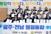 [ 한국미디어뉴스 이종철 기자 ] 전라남도는 16일 전남도청 왕인실에서 ‘2026년 도-시군 상생협력 간담회’를 열어 지역 대도약을 위한 광주·전남 행정통합 추진에 도와 22개 시군이 공동 보조를 맞추기로 했다. 간담회는 김영록 전남도지사와 22개 시장·군수 등 관계자 100여 명이 참석한 가운데, 광주·전남 행정통합 추진계획과 전남도 재생에너지 추진전략을 중심으로 발표와 토론이 진행됐다. 이들은 광주·전남 행정통합을 통해 대한민국 제1호 통합 광역지방정부 출범을 목표로, 도와 시군이 상생 협력 의지를 재확인하고, 전남의 미래 성장 전략을 논의했다. 특히 특별법 제정안을 중심으로 행정통합 추진 경과와 향후 일정을 공유하고, 전남을 대한민국 첨단산업을 이끄는 ‘재생에너지의 심장’으로 육성하기 위한 시군의 협력 방향과 역할 분담에 공감대를 형성했다. 김영록 지사와 전남시장군수협의회는 광주·전남 행정통합 환영 성명서를 발표하고, 초광역 경제 중심지 도약을 위한 행정 통합에 적극 협력할 뜻을 밝혔다. 또한 22개 시군의 고유한 특성과 자율성이 존중되는 균형발전형 통합과 민주적 합의, 도민 공