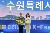 [ 한국미디어뉴스 김일규 기자 ] 수원특례시가 ‘제6회 대한민국 축제 엑스포 베스트 축제 어워드’에서 기초자치단체 부문 대상을 받았다. 시상식은 19일 수원컨벤센센터에서 열렸다. 수원시는 17~19일 수원컨벤션센터에서 열린 제6회 대한민국 축제 엑스포에 참가해 부스를 운영하며 ‘2026-2027 수원 방문의 해’와 수원화성문화제, 정조대왕능행차 공동재현, 수원화성 미디어아트 등 수원시를 대표하는 축제를 방문객들에게 홍보했다. 베스트 축제 어워드 수상 지자체는 홍보 부스 운영계획, 프로그램 참여도, 현장 평가 등을 종합적으로 평가해 선정한다. 수원시는 마케팅, 콘텐츠, 부스 운영, 대중 선호도 등 모든 분야에서 우수한 성과를 인정받아 최고점을 받았다. 시상식에 참석한 선은임 수원시 문화관광체육국장은 “대한민국 축제 엑스포에서 수원의 축제 역량을 인정받고, 대상을 받게 돼 기쁘다”며 “앞으로도 차별화된 콘텐츠로 글로벌 축제 도시로서 위상을 높여 나가겠다”고 밝혔다. 대한민국 축제 엑스포는 전국의 대표 축제들을 만날 수 있는 국내 최대 축제 전문 박람회다.