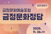 [ 한국미디어뉴스 이원영 기자 ] 부산시 금정구 금정문화재단은 금정구 예술인과 함께 지역 문화예술의 현안을 공유하고 미래 발전 방향을 모색하기 위한 2025 하반기 금정문화예술포럼 '금정문화정담'을 오는 11월 26일 오후 6시 30분, 아르코공연연습센터@금정 대연습실에서 개최한다고 밝혔다. 상반기 포럼이‘동행: 금정예술가 정답게 주고받는 이야기’를 주제로 지역 문화환경의 변화 속에서 예술 생태계의 현황을 공유하고 네트워킹의 중요성을 강조했다면, 하반기 포럼은 한 해의 활동을 돌아보고 향후 재단과 예술인이 함께 만들어갈 협력과 실천의 방향을 구체화하는 자리가 될 예정이다. 특히 이번 포럼은‘금정구 거주예술인 모집’을 통해 약 100명의 지역 예술가가 참여할 예정이다. 포럼에서는 지역문화 진흥과 예술가 참여 확대를 위한 다양한 의견을 수렴하고, 예술 장르별 교류와 네트워킹을 통해 협력 기반을 강화하는 시간을 갖는다. 또한 참가 예술인에게는 소정의 참석비가 지급될 예정이다. 윤일현 금정문화재단 이사장은 “금정의 예술인들과 함께 만들어가는 포럼이 지역 문화의 밝은 내일을 여는 원동력이 되길 바라며, 예