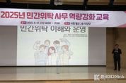 [ 한국미디어뉴스 김서안 기자 ] 하남시는 민간위탁 사무의 투명성과 책임성을 높이기 위해 민간위탁 담당 직원 100여 명을 대상으로 직무 역량 강화 교육을 실시했다. 18일 하남시에 따르면, 지난 17일 시청 별관 2층 대강당에서 배성기 한국민간위탁경영연구소 소장을 초빙해 ‘민간위탁 이해와 운영’을 주제로 민간위탁 사무 역량 강화 교육을 진행했다고 밝혔다. 민간위탁은 법령이나 조례 등에 따라 자치단체장이 시행해야 할 사무를 민간에 위탁해 운영하는 방식으로, 하남시는 이번 교육을 통해 민간위탁 업무의 관리 능력을 한층 강화하고자 했다. 이번 교육에서 △민간위탁의 이해 △민간위탁 관리지침 △민간위탁 대상 사무 선정 기준 △민간위탁 예산 검토 △업체 선정 및 계약서 검토 등 민간위탁 운영의 주요 항목에 대해 설명했다. 시 관계자는 “민간위탁 사무는 법령이 복잡해 담당자들이 혼란을 겪을 수 있는데, 이번 교육을 통해 직원들의 업무 이해도와 수행 능력을 크게 향상시킬 수 있었다”며, “앞으로도 민간위탁 사무의 관리 능력을 지속적으로 강화하여 시민 만족도를 높여 나가겠다”고 강조했다. 하남시는