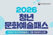 [ 한국미디어뉴스 황영수 기자 ] ■ 2026 청년문화예술패스, 2월 25일부터 신청 - 19~20세 청년 최대 20만 원 청년 문화예술패스는 19~20세 청년*이 협력 예매처에서 공연, 전시, 영화 예매에 즉시 사용할 수 있는 이용권입니다. * 2026년 대상은 2006~2007년생 서울, 경기, 인천 등 수도권 지역 거주 청년→15만 원 비수도권 지역 거주 청년→20만 원 기존에는 사전에 한 개의 예매처만 선택해 이용할 수 있었는데요. 올해부터는 7개 예매처에서 공연과 전시, 영화 등 보고 싶은 작품의 관람권을 예매할 수 있습니다. NOL ticket, 티켓링크, yes24, Melon티켓, MEGABOX, 롯데시네마, CGV ■ 지원대상 대한민국 19~20세 청년 총 28만 명 생애 최초 1회 지원 ■ 신청기간 2026년 2월 25일~6월 30일 신청순 발급(지역별 예산 소진 시 해당 지역 발급 마감) ■ 신청방법 청년문화예술패스 누리집 회원가입 후 온라인 신청 ■ 문의 청년문화예술패스 고객지원센터 ☎1577-1968