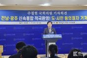 [ 한국미디어뉴스 이원영 기자 ] 주철현 더불어민주당 국회의원(전남 여수시갑)은 7일 오후 2시 30분, 전남도의회 브리핑룸에서 기자회견을 열고, 광주·전남 행정통합에 대한 적극적인 환영 입장과 함께 통합의 방향에 대한 의견과 비전을 밝혔다. 주 의원은 이날 기자회견에서 “광주·전남 행정통합은 인구감소와 지방소멸이라는 위기를 극복하고, 수도권 일극 체제를 넘어 대한민국 어디서나 살기 좋은 지방시대를 여는 시대적 소명”이라며 “이 역사적인 여정에 누구보다 앞장서겠다”고 강조했다. 특히 주 의원은 이재명 정부의 ‘5극 3특’ 지역균형발전 전략을 언급하며, “광주·전남이 하나의 메가시티로 도약하는 것은 단순한 행정구역 개편을 넘어 공정 성장과 국가 균형발전의 토대를 만드는 일”이라며 “광주·전남 통합이 이재명 정부 국정철학의 핵심 성공 모델이 되도록 모든 역량을 쏟겠다”고 밝혔다. 이어 주 의원은 행정통합의 최종 완성은 주민투표를 통한 국민주권 실천이어야 한다고 분명히 했다. 아울러 “행정통합은 시·도민의 삶의 궤적을 바꾸는 중대한 사안으로, 헌법 제1조가 명시한 국민주권 원칙에 따라 통합의 결정권자는 국민”이라며