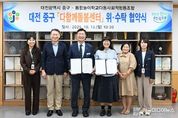 [ 한국미디어뉴스 이보영 기자 ] 대전 중구는 13일 통합놀이학교다동 사회적협동조합(대표 이미라)과 다함께돌봄센터 석교1호점 위수탁 운영협약을 체결했다고 밝혔다. 수탁기관으로 선정된 통합놀이학교다동 사회적협동조합은 향후 5년간 다함께돌봄센터의 시설 관리와 운영 전반을 맡아 석교동 일대의 맞벌이 가정과 다자녀 가구 등 양육 부담이 큰 가정을 대상으로 안전하고 다양한 돌봄서비스를 제공할 계획이다. 올해 11월 개소 예정인 다함께돌봄센터 석교1호점은 석교동복합커뮤니티센터 2층에 들어선다. 이곳은 행정복지센터, 작은도서관, 주민자치 프로그램실과 함께 운영되어 지역사회와 긴밀히 연계된 통합 돌봄 환경을 구축할 것으로 기대된다. 김제선 중구청장은 “가정의 양육 부담을 덜어주고 아동이 건강하게 성장할 수 있도록 초등돌봄 기관을 지속해서 확충할 예정이다”라며, “세심한 돌봄서비스를 제공할 수 있는 전문기관과 협력해 아이들이 행복하게 지낼 수 있는 돌봄환경을 조성하도록 최선을 다하겠다 ”라고 말했다.