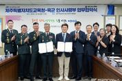 [ 한국미디어뉴스 이원영 기자 ] 제주특별자치도교육청은 13일 도교육청 상황실에서 육군 인사사령부와 고등학생들의 진로 탐색 기회 확대를 위한 업무협약을 체결했다. 이번 협약을 통해 양 기관은 군 관련 진로교육 활성화, 학교별 육군 간부 모집 설명회 지원, 대학입학정보박람회 협력, 군 특성화고 및 부사관학과 운영학교 대상 진로·직업 소개 및 모집 홍보 등 다양한 분야에서 상호 협력하기로 했다. 도교육청은 이번 협약을 계기로 학생들이 군의 다양한 역할과 직업적 비전을 올바르게 이해하고 군 진로를 미래의 선택지로 인식하는 데 도움이 될 것으로 기대하고 있다. 김광수 교육감은 “학생들이 진로를 탐색하는 과정에서 군이 가진 사회적 가치와 다양한 직무 영역을 직접 체험할 수 있도록 지원하겠다”라며 “교육청과과 군이 함께 협력하여 미래인재 양성에 기여할 것”이라고 말했다.