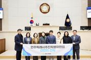 [ 한국미디어뉴스 이원영 기자 ] 용인특례시의회는 30일 의장실에서 원주시의회 원주특례시추진특별위원회의 방문을 받고 특례시 추진 및 운영 사례를 공유하는 시간을 가졌다고 밝혔다. 이번 방문은 특례시 추진을 준비 중인 원주시의회가 용인특례시의회의 제도 운영 경험과 의회 조직·권한 구조를 벤치마킹하기 위해 마련됐다. 용인특례시의회에서는 유진선 의장을 비롯해 이윤미 의회운영위원장, 김희영·이진규·기주옥 의원이 참석했으며, 용인특례시 자치분권과 관계자들도 함께했다. 원주시의회 원주특례시추진특별위원회에서는 손준기 위원장과 최미옥·문정환 의원 등 관계자들이 참석했다. 이날 일정은 상호 소개를 시작으로 ▲특례시 운영 현황 및 제도적 기반에 대한 설명 ▲특례시 추진 과정과 의회 역할 공유 ▲의회 시설 견학 순으로 진행됐다. 특히, 참석자들은 ‘지방자치법’과 ‘지방자치분권 및 지역균형발전에 관한 특별법’ 등 특례시 관련 법령 체계, 인구 100만 이상 대도시의 행·재정 수요 증가에 따른 특례시 도입 배경과 필요성, ‘특례시의회 사무기구 구성과 정책지원 전문인력 운영 사례 등에 대해 심도 있는 의견을 나눴다. &n