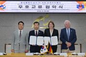 [ 한국미디어뉴스 이보영 기자 ] 울산 남구(구청장 서동욱)가 제29회 울산고래축제를 방문한 독일 오버우어젤시(시장 안티에 룽게)와 우호교류 협약을 체결했다. 이는 울산지역 기초자치단체 중 최초로 유럽권 도시와의 공식 교류가 성사된 사례로, 지역 국제화의 새로운 이정표가 될 전망이다. 26일 남구청 3층 회의실에서 열린 협약식은 안티에 룽게 시장을 비롯한 오버우어젤시 방문단 8명과 울산 남구 측 10여 명이 참여한 가운데 양측 참석자 소개와 홍보영상 시청, 협약서 서명, 기념품 전달 등의 순으로 1시간 동안 진행됐다. 오버우어젤시는 프랑크푸르트 인근에 위치한 도시로 교통·교육·자연환경·치안 등 빼어난 거주 여건을 가져 다수의 외국인이 조화롭게 살아가는 독일의 대표적인 모범 주거 도시이다. 남구는 지난 6월 오버우어젤시와 우호교류의향서 체결을 시작으로, 9월에는 오버우어젤시를 방문해 ‘한국-오버우어젤시 만남 축제’에 참가하고 울산고래축제와 장생포 수국페스티벌을 홍보한 바 있다. 한편 남구는 26일 인천 계양구(구청장 윤환)과는 자매결연 협약을 체결하고 두 도시의 공동 발전과 교류 증진