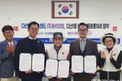 [ 한국미디어뉴스 김서안 기자 ] 남양주시는 28일 오후 4시 다산행정복지센터 소회의실에서 (주)바이오템, 다산1동 노인회 골프동아리와 어르신 복지 증진과 지역사회 나눔문화 확산을 위한 단체복 전달 협약을 체결했다. 이번 협약은 지역 기업의 사회공헌 활동과 주민의 자발적 참여를 연계해 어르신의 건강한 여가생활을 지원하고, 나눔문화 정착을 도모하기 위해 마련됐다. 다산행정복지센터는 협약 전 과정을 주관하며 행정적 지원을 맡았다. 협약식에는 △이기복 다산행정복지센터장 △이영호 바이오템 대표 △이대희 다산1동 노인회 골프동아리 회장을 비롯한 관계자들이 참석했다. 세 기관은 이번 협약을 통해 어르신 동아리 활동 활성화와 지역사회 공동체 문화 조성을 위해 상호 협력하기로 했다. 이날 바이오템은 노인회 동아리 회원을 위해 모자와 ‘배러투데이(Better Today)’가 디자인한 단체복을 전달하며 따뜻한 나눔을 실천했다. 바이오템은 친환경 임플란트 전문기업으로, 이영호 대표는 남양주다산로타리클럽 회장으로서 지난 8월 다산노인복지관에 100만 원 상당의 삼계탕을 기부하는 등 꾸준한 사회공헌을 이어오고 있다. 한