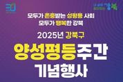 [ 한국미디어뉴스 이보영 기자 ] 서울 강북구는 양성평등주간(9월 1일~7일)을 맞아 오는 9월 2일부터 9월 4일까지 3일간 강북구청 일대에서 ‘2025년 강북구 양성평등주간 기념행사’를 개최한다. 이번 행사는 양성평등 실현에 기여한 유공자를 격려하고, 구민과 함께하는 다채로운 프로그램을 통해 성평등 인식을 넓히기 위해 마련됐다. 기념식은 9월 2일 오후 3시 강북구청 대강당에서 열린다. 이날 기념식에서는 양성평등 문화 확산과 여성 사회참여 확대에 기여한 유공자에게 구청장 표창이 수여된다. 이어 구립시니어합창단의 오프닝 공연과 지역예술인의 축하 공연, 전 참석자가 함께하는 양성평등주간 기념 퍼포먼스가 펼쳐질 예정이다. 같은 날 기념식 종료 후 오후 4시부터 7시까지는 구청 광장에서 주민 누구나 자유롭게 참여할 수 있는 부대행사가 진행된다. 지역예술인의 버스킹 공연과 함께 여성친화도시 구민참여단, 강북구여성연합회, 관내 여성단체 및 유관기관 등이 참여하는 여성정책 관련 홍보·체험 부스가 운영된다. 9월 3일 오후 2시에는 강북구청 다목적회의실에서 ‘강북 여성안전정책 토론회’가 열린다. 양성평등기금