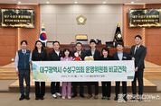 [ 한국미디어뉴스 이보영 기자 ] 대구 수성구의회 운영위원회 소속 의원들이 울산 중구의회를 찾아 교류행사를 가졌다. 울산 중구의회 의회운영위원회 29일 의원회의실에서 대구 수성구의회 운영위원회와 방문 간담회를 마련했다. 이날 간담회에는 중구의회 의회운영위원회 소속 안영호 위원장을 비롯해 문기호 부위원장, 강혜순·김도운·정재환 의원 등이 참석한 가운데 대구 수성구의회 운영위원회 의원들과 환담을 갖고 두 도시 간 특징과 의회운영방안, 향후 교류 방향성 등을 논의했다. 대구 수성구의회는 지난 2019년에 복지건설위원회가, 2017년에는 도시보건위원회 소속 의원들이 울산 중구의회를 찾는 등 이번이 세 번째 방문이다. 특히 수성구의회는 전국적인 모범사례로 손꼽히고 있는 중구의회의 공무국외연수 운영 방안에 대해 큰 관심을 보이며 전반적인 운영 상황을 주의 깊게 청취하기도 했다. 수성구의회 황치모 위원장은 “울산 중구는 제2호 국가정원을 품은 역사와 전통, 문화가 살아있는 곳이라 꼭 한번 방문해 보고 싶었다”며 “중구의회의 환대에 감사드리며 의원 운영 전반에 발전방안을 잘 보고 배워가는 소중한 기